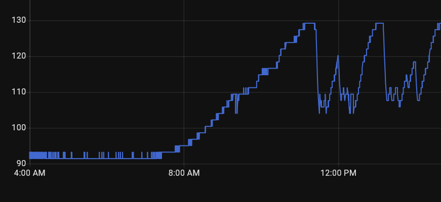 Measurements made through Home Assistant - Temperature Internal sensor.