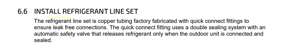 It is my understanding that the Line sets and Line set extensions are PRE-VACUUMED and do not have refrigerant in them.