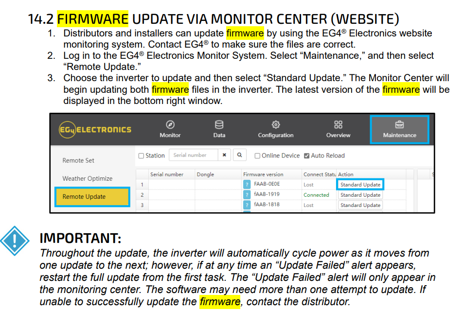 @eg4eric Thank you for suggesting this. Do you happen to have a link to instructions on how I should do that? I am assuming you are talking about the Flexboss firmware, and not the batteries also, is that correct?