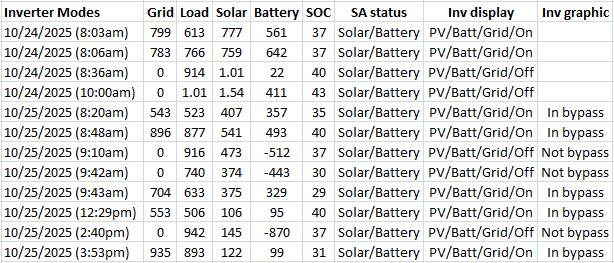 Thanks for the reply. That was helpful, but I was hoping for more sequence information. At the moment, I'm trying to do a simple switch from Solar/Battery to Bypass, based on state of charge. The conditions are: