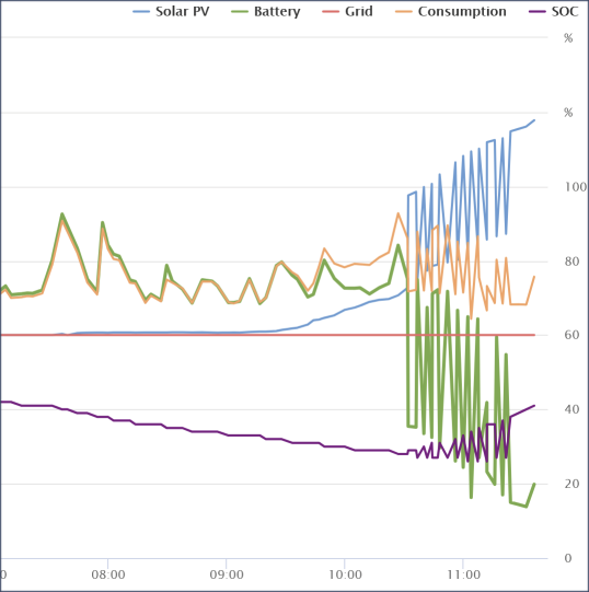 What causes the below results on today's data starting around 10:30 PST. I am fairly certain there are not multiple solar eclipses happening a few minutes apart and it is a cloudless day! This seems to happen occasionally, maybe every 2-4 weeks. I assume it is some hiccup on EG4's side. Any ideas?