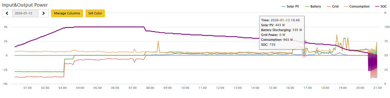 The inverter supposed to switch to self consumption at 6 am, and switch back to gris at 8 pm.... nothing worked as supposed to. Finally I have restarted the inverter and all seems back working - yet the weird SoC reporting continues.
