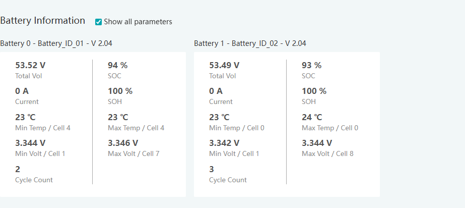 @eg4eric I am the installer. I've already used the USB cable to access and update to the latest firmware, all good there. I was just looking for options to see internal battery data through the EG4 monitor app exemplified in other forum posts. It appeared the battery data was only coming through when the battery comms were set up in the app using a device parameter like serial# or device ID.