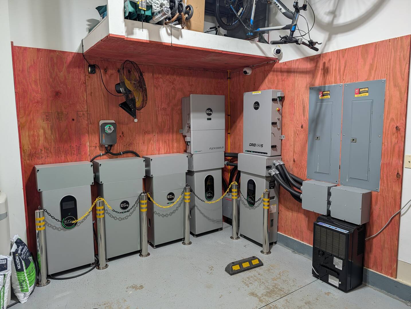 Flexboss21, GridBoss, 3-280Ah Indoor Batteries, 2- 314 Indoor Batteries, 30- 455W Canadian Solar Top Cons.
