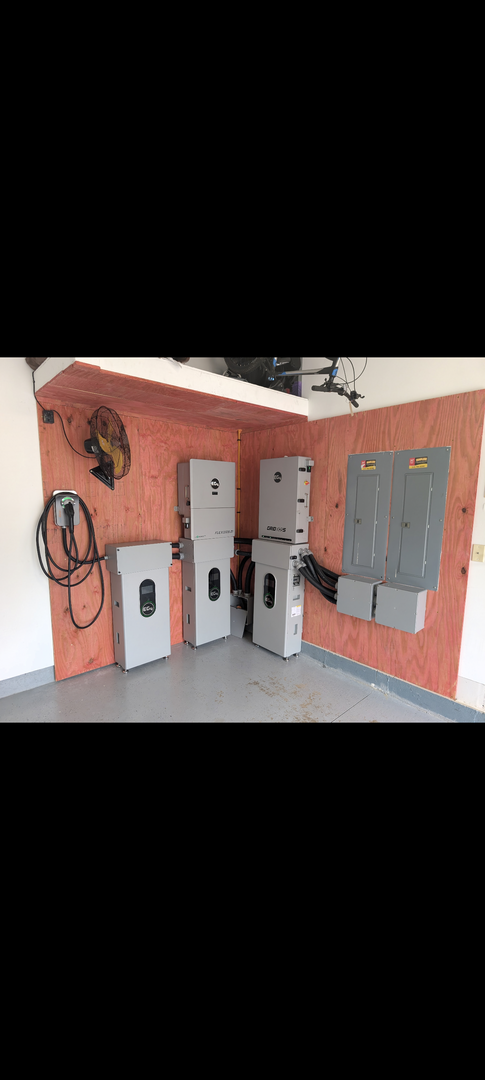 Hello new to posting on here. After about 5 months I finally got my system fully running and complete. I have it grid peaking during the day, forced discharge at prime time.I sell back all solar and then charge everything at night on Super off peak. I have 2-200 amp panels that had to be completely redone as the house was split so I had to move the house to 1 entire panel. 2 car chargers, and 100 A sub panel are on the 1 Main panel feed directly off grid. The main incoming gas line to the house from the meter had to be rerouted and a few romex cables as well had to be rerouted. The grid boss now feeds it's now Sub panel that completely feeds the house. I have a circuit built for if the Grid goes down it kills a relay to then take the AC unit off line so it doesn't just sit and chew through batteries in the summer during a extended outage. As it is a 5 ton unit. I put a soft start on the AC to ease the start load and the flex boss does a great job. I Live in Northwest Indiana not ideal for solar.