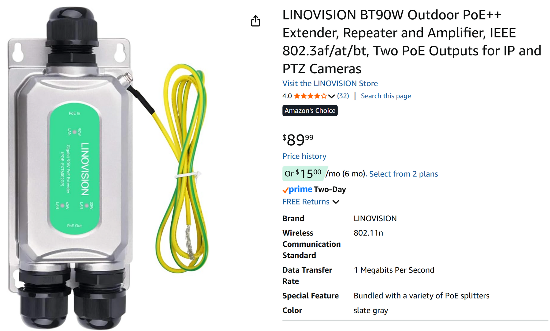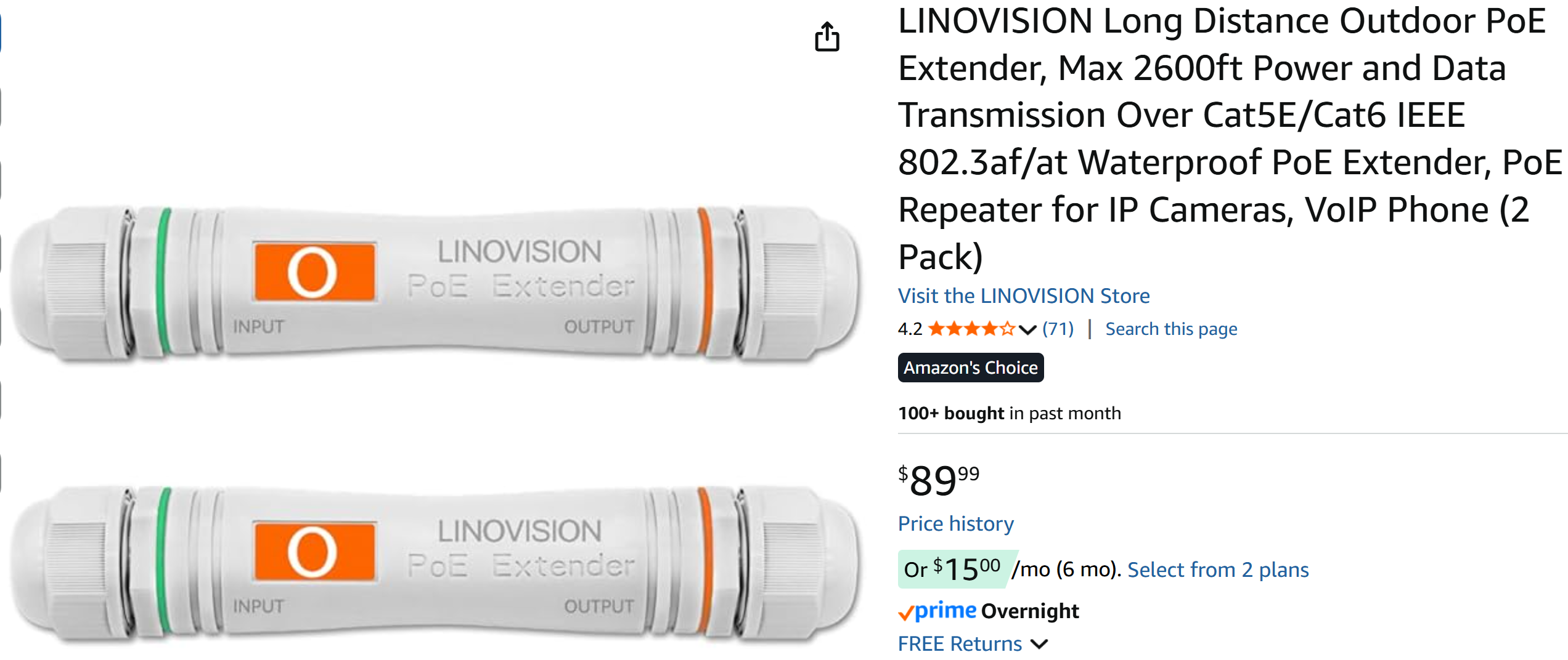At the terminal end I am using the LINOVISION 90w input 30w/60w output splitter The 60w to the camera and 30w to Wifi extender.