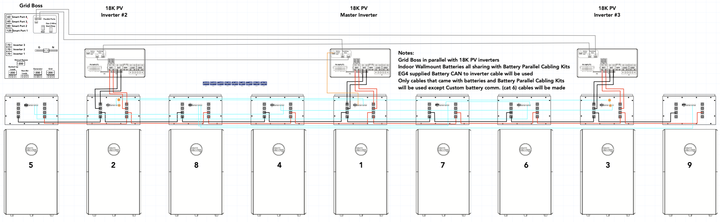 I would like to add three more batteries to the EG4 recommended wiring diagram below.