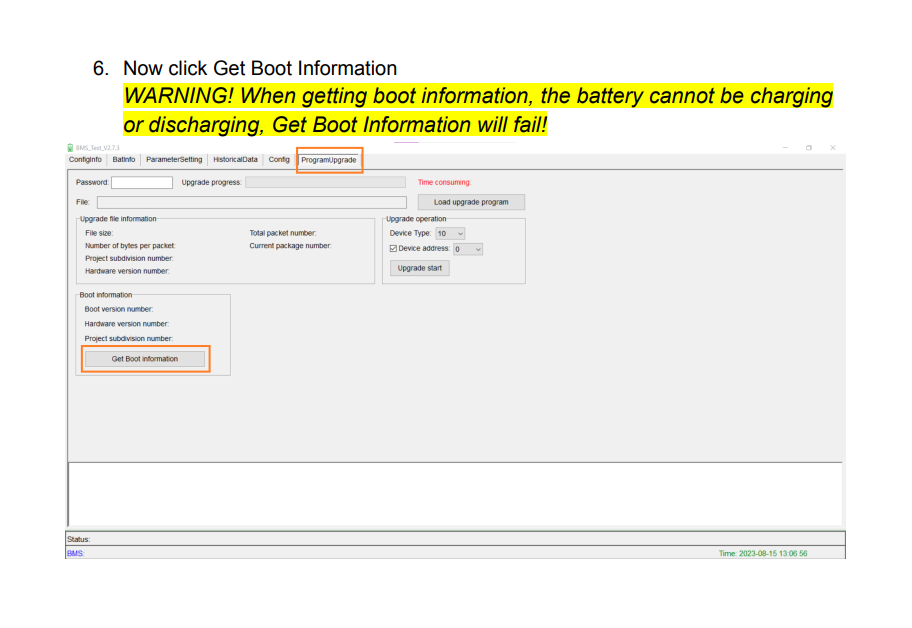 I have 2 older EG4 Lifepower4 48 100AH V1's I bought from SS. These were purchased back in 2022 and have never been used. I am trying to upgrade the FW on them, and when I get to step 6 in the official upgrade guide where it says to get boot information, clicking the "Get Boot Information" button in the app results in a "Get boot information failed!" msg. I can see that there is communication between the app on my laptop and the battery because as soon as I click that button in the app I can see by LED's on the battery that it is doing a soft restart, but that info is not getting to the app. Both batteries have the same behavior.