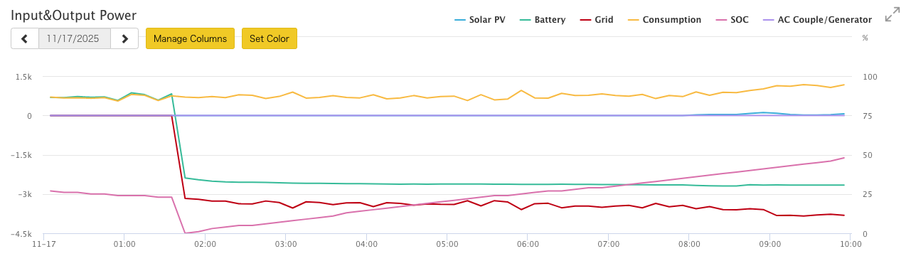 I've had a couple days now where my EG4 Wallmount Indoor 280Ah battery goes from 23 to 0% and kicks in AC charging. I've plugged in the BMS Tools via the RS485 cable, and there are no alarms before this happens. The app crashes after a bit so I can't let it run overnight to see more detail.