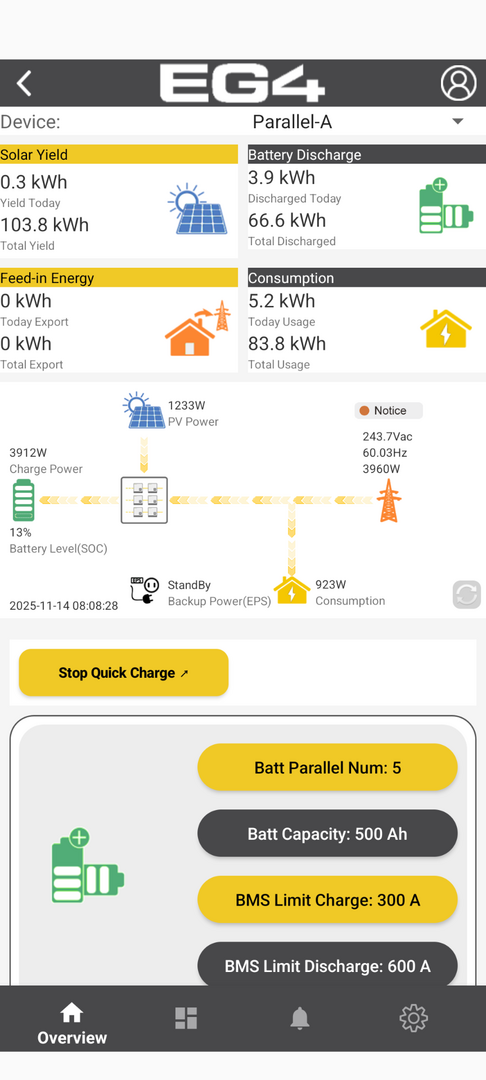 as I'm typing this. my state of charge has dropped to 14%. Even though my inverter is pushing in 4,000watts into the battery, and I started at 18% this morning. what is going on? Is the BMS bringing batteries online and offline to balance them, or is something else wrong?