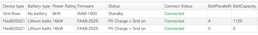 Have two FlexBoss21's, four 280Ah All Weather Wallmounts, and a Gridboss. Just upgraded the batteries to S02T25 and Z02T28, now I only see this in the monitoring site. It does see the 4 batteries under devices. Battery setting is Lithium and Brand 1.