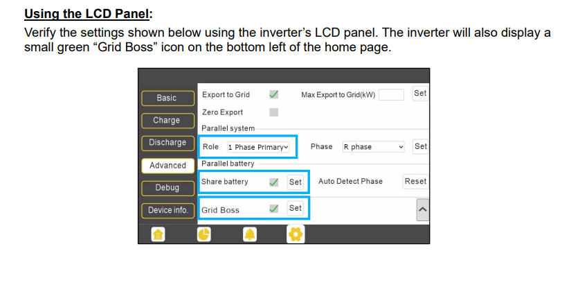 1) The monitor website for Gridboss does not seem to pull the correct info from the Flexboss21 with parallel options selected: