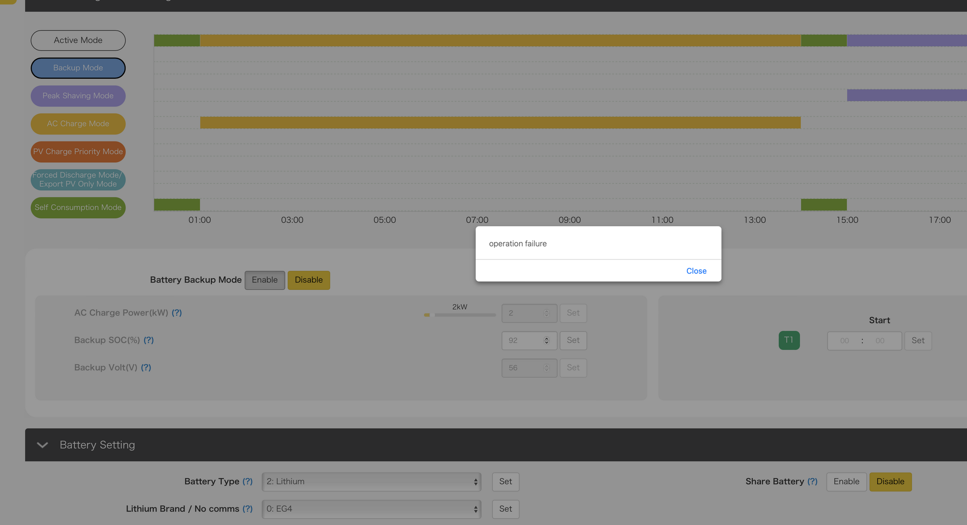 One serious issue is that I cannot enable battery backup mode in my inverter setting.