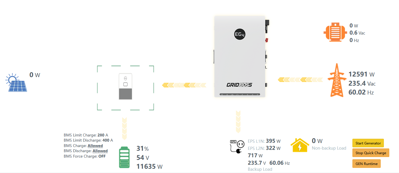Note that other than the above PV issue, all else appears to be working. Batteries can supply power to EPS loads & can be charged from grid.