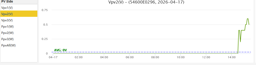 Symptom & troubleshooting, This is a new, recently installed system that the PV never starts up. PV panels can be configured as two banks or one complete bank. Initially tried two banks connected to PV inputs 2 & 3 where PV 2 had ~220VDC on it's input and PV 3 had ~ 180VDC. The MPPT's would never start up, i.e. no PV current pulled by inverter on either input (measured with external voltage and current meter). Also, no PV voltage displayed in any PV (1,2,3) Data, Chart, Voltage measurement. I can physically measure voltage at each PV 2 & 3 inverter input terminals but yet no voltage measured by inverter other than small accuracy related fluctuations. In knowing that this inverter has a MPPT start up voltage of 200VDC. The thought was that I was right at it's minimum so I also lowered the Start PV Voltage to 170V. Still no go. I then configured the two strings into one complete string. This now has a voltage of ~380 - 400VDC. I then transferred this to MPPT 1's inputs. This did not work any better and I still could not see any voltage on PV 1's Data Voltage measurement. I have checked all settings under the maintenance tab and everything appears correct. Even the advanced settings -