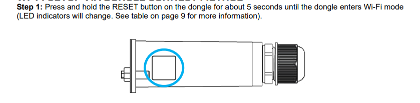 4. Performed 5 sec reset. Got Ethernet path to work. No outside indication on dongle to indicate what path the data is taking - i.e.