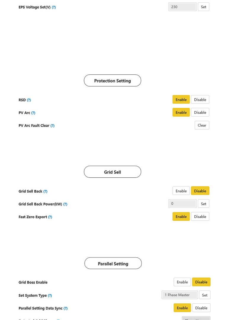 @ezpz Noted and thank you for the input. I am attaching the system configuration settings for reference. From my observation, it appears that the connection to the GRID activates when there is a significant load or production swing where the inverter's power level cannot keep up with the power swing. Due to customer requests, my post was to get clarity from EG4 gurus on the observation(this is not mentioned in the manual).